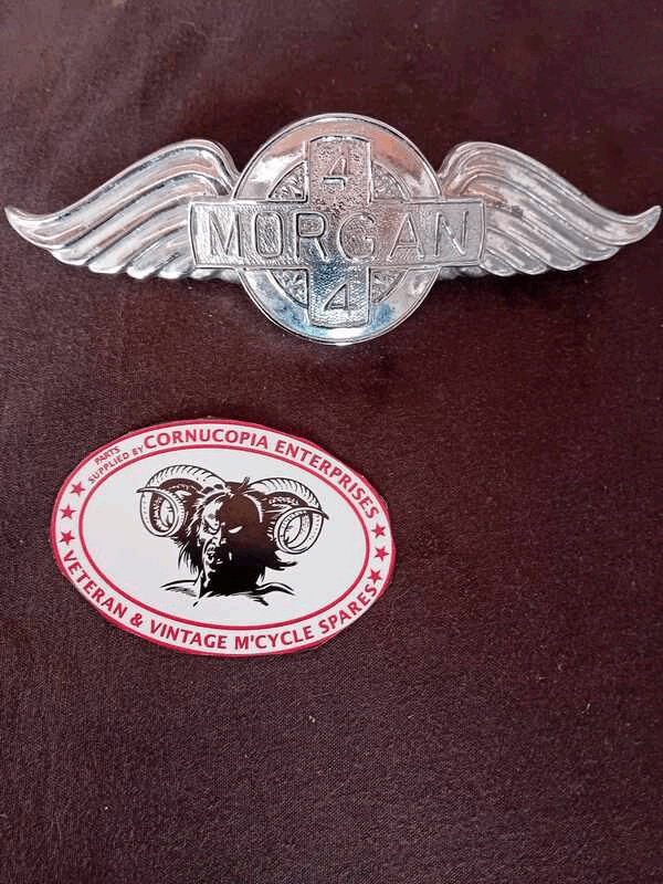 Morgan (car) +4 Hood (Kühler) Badge, Emblem, used, recently re-chromed (some damage on rear, not visible when fitted) |
