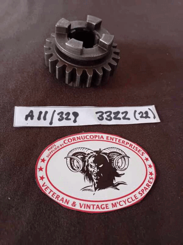 Norton Dolls Head Gearbox Gear 3322 A11/329 22T (Less Bush) N.O.S Genuine Norton Main Axle Sliding Pinion Fits 16H, B.Four, Mod 18, etc., 1932 onwards; 1946-49 Models 30, 30M, 40, 40M, ES2 EURO 60.00 N.O.S Good N.O.S (But with slight pitting on some teeth) EURO 50.00 |