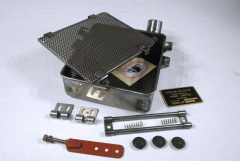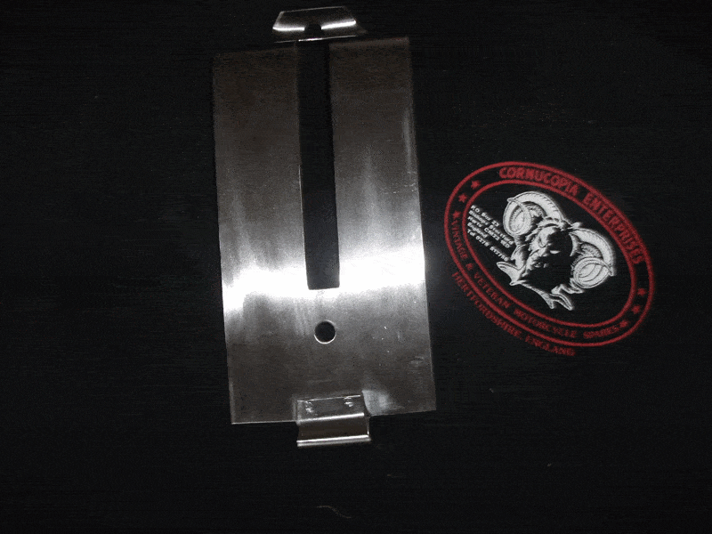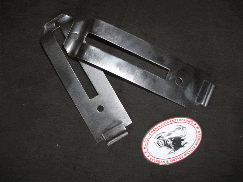 Matchless G3 G3 L (War Dept) battery carrier, 3.1/4 inch = 85mm wide. Replica front portion (brushed stainless steel strap) Pt Nr W39-G3-E182. Fits 1939 onwards G3 and G3L models 1941 onwards. |