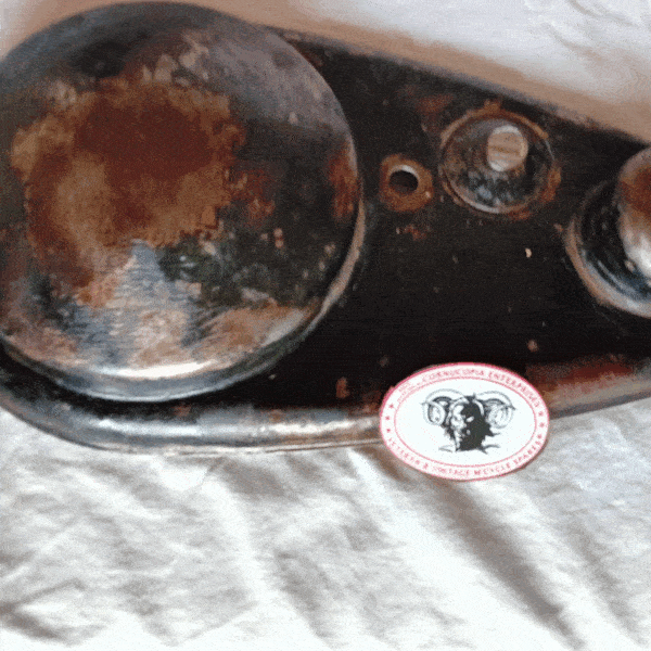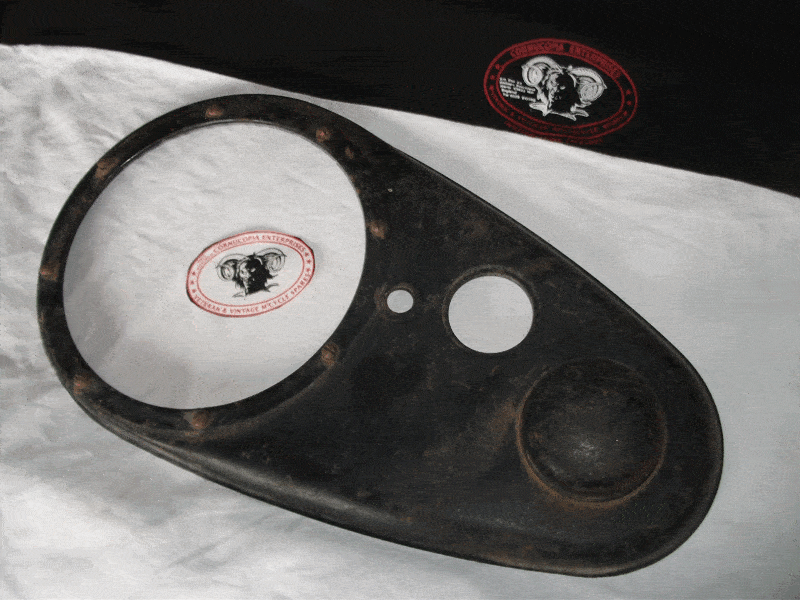 AJS Inner Timing cover Genuine ( Used ) Bead Blasted, lightly polished fits 1935-50 all Single Models with Magneto Ignition AJS Part No. 010770 or 35.22/E.32 |