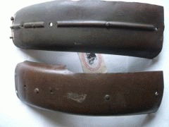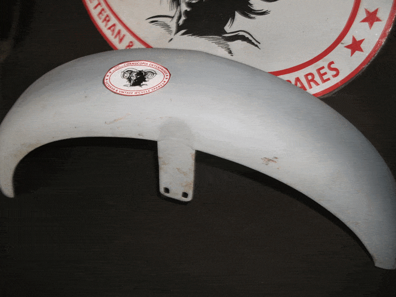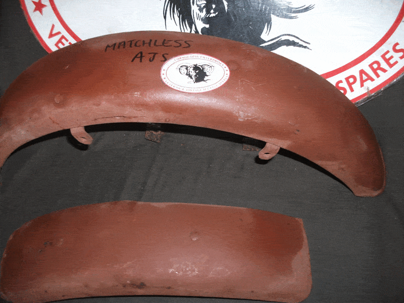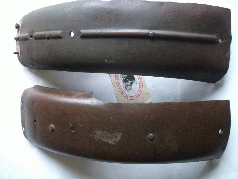 Matchless / AJS Rear Mudguard Bottom Section ( Gear Box End ) Genuine AMC ( used ) some with Rib in Centre, some plain ( approx one Inch has been removed from Base of Guard ) FOR INFORMATION ONLY ( complete mudguard AMC Part No. KF-W41-G3L-M4 ) ( 1 ) Guard with Ribb in Centre fits 1939-40 G3 ( 2 ) plain Guard fits 1941-47 G3L + G80 |