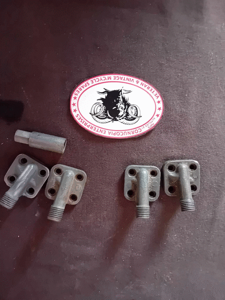 Timing Covers Matchless G80 Etc, Inner & Outer (used) Genuine AMC, inner Pt Nr 016863 Outer Pt Nr 021341 Good Condition, Threads Good, Nice Polished Cover (For Restoration) Fits mid 1950s Singles with auto Advance Unit. |