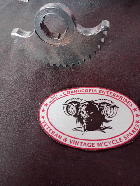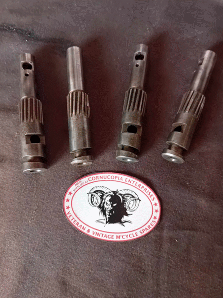 MATCHLESS 1950 etc MODELS WITH HAIRPIN VALVE SPRINGS COLLER FOR V. SPRING Genuine AMC NOS Pt Nr 013990 | MATCHLESS / AJS SINGLES. OIL PUMP SHAFT end cap front STD 773, GENUINE AMC NOS. EURO 65.00 (Used) EURO 40.00 Both items include GENUINE AMC NOS. Rocker oil feed pipe fixing Nut Sleeve Pt Nr 37-12-E380, 37-12-E380 on its own EURO 14.00 Fits all singles 350cc / 500cc 1940-60 | MATCHLESS - AJS PLUNGER SHAFT FOR OIL PUMP UF-STD-770 (Later Pt Nr 012967) NOS GENUINE MATCHLESS 1940 G3 - onwards. G3L, 1941 onwards Pt Nr UF-STD-770 (Slot for guide screw pin 38-12-E96, width of SLOT 4.83-98mm) LATER MODELS HAVE WIDE (GUIDE PIN Pt Nr 010079) SLOT width 6.65-6.92mm Fits G3L-G3LS-G3LC- G80-G80S-G80C 350cc 500cc SINGLES, AJS 16MS-16M-16MC- MOD18- 18S-18C MANY IN STOCK SOME WITH GENUINE FACTORY LABELS, NOS EURO 220.00 Many Good used Genuine shafts (BOTH TYPES) Some with very slight wear. VARIOUS CONDITIONS FROM EURO 140.00 | MATCHLESS 1940 G3 1941 on G3L Kick Start Qadrant Pt Nr 199-X-3 GENUINE AMC NOS | ||