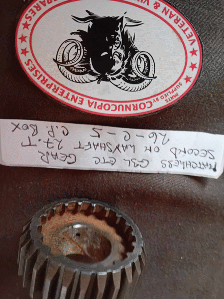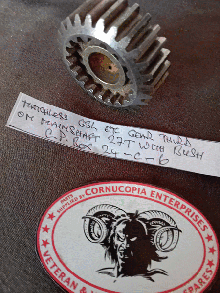 MATCHLESS 1941 onwards G3L G80 + AJS 16-18 MODELS SECOND ON MAINSHAFT GEAR 27T C.P. BOX Pt Nr 26-C-5 GENUINE AMC, NOS | MATCHLESS 1941 onwards G3L G80 + AJS 16-18 MODELS 1ST GEAR ON LAYSHAFT 32T C.P. BOX Pt Nr 27-C-5 GENUINE AMC, NOS | MATCHLESS 1944 onwards G3L G80 + AJS 16-18 MODELS THIRD GEAR ON MAINSHAFT 27T (with bush) C.P. BOX Pt Nr 24-C-6 GENUINE AMC, NOS | MATCHLESS 1944 onwards G3L G80 + AJS 16-18 MODELS SMALL GEAR ON LAYSHAFT 20T C.P. BOX Pt Nr 28-C-3 GENUINE AMC, NOS | ||