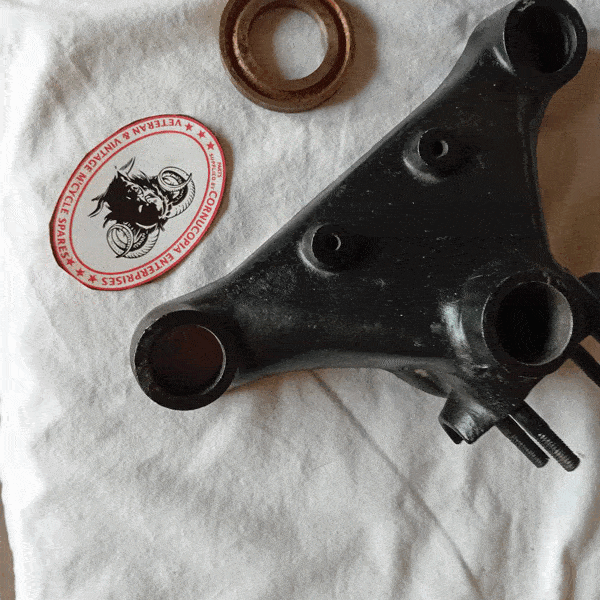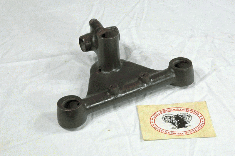 MATCHLESS AJS COMPETITION G3LC & G80C Trials MODELS etc. Fork crown assembly complete Pt Nr 015725 We offer the ALLOY top yoke (LUG9 Pt Nr 013631). GENUINE AMC (used) less H. BAR CLAMP Fits EARLY 1950s models. (Includes Genuine NOS Top yoke steering head race Pt Nr 012620) Yoke + Bearing |