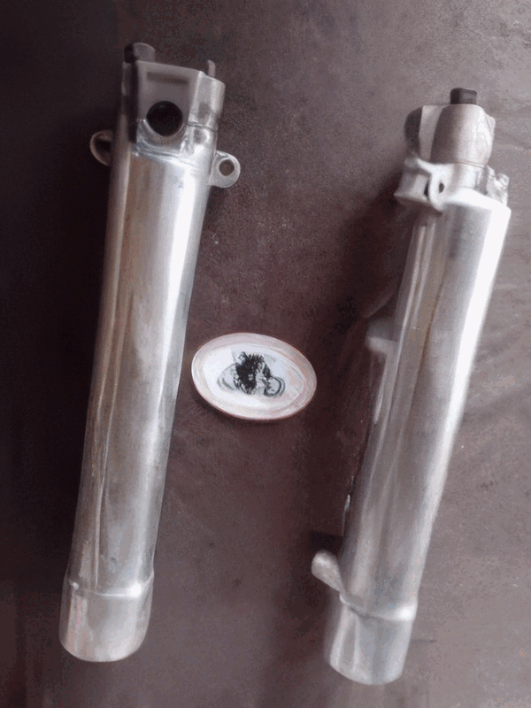 MATCHLESS FORK SLIDERS 1941-46 G3L MODEL, PAIR, used. Pt Nr 40-G12M-FF183C. R. HAND & L. HAND, POLISHED. + pair bottom caps used 40-G12M-FF183C. All threads good, two studs for the caps missing. For restoration. |