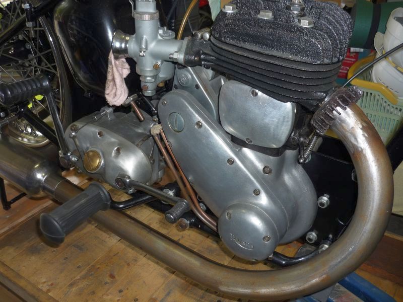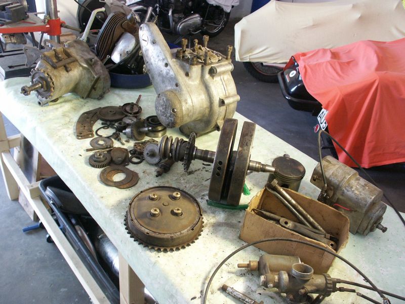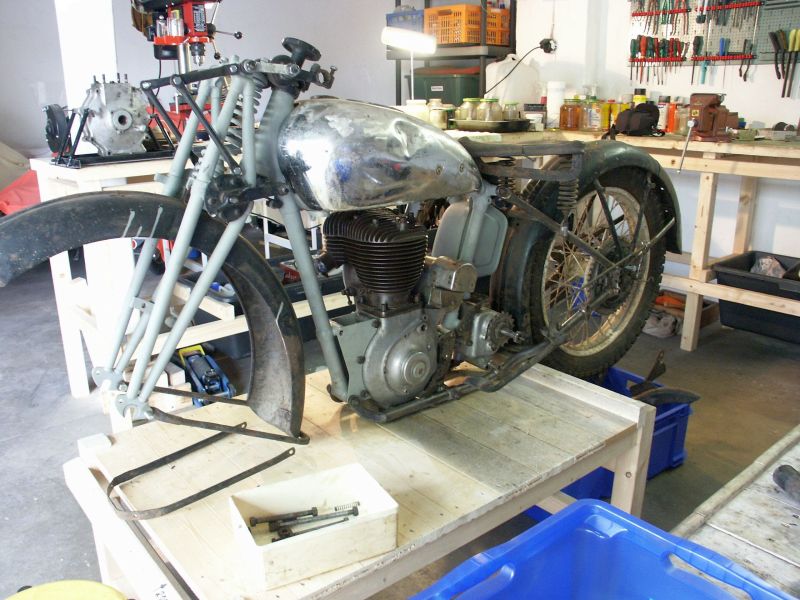 A very modest Bernd Große ( alias the Professor, see D-Day 70th Anniversary Photos) is the Owner of the rare 1937 Triumph 6S, found in Lithuania. Not only is he our Webmaster, also a collector of fine Objects. If you speak to him nicley, he may sell some of his Spares ? Triumph 6S, 3HW, Matchless & AJS Singles 350/500cc, Royal Enfield Twins, NSU Max. Should you have any Parts, half complete Projects for Sale, he is always interested. Peter Long In 2004 I bought a Triumph 1937 Model 6S. The Machine was totally disassembled except for the Gearbox. Thanks to a Spare Part List from Peter I could check the Completeness. Several Parts were missing or were wrong. Peter was able to help me with the Procurement of many Parts. The remaining Parts I could find at the Eurojumble in Netley Marsh. At the present Time, the Wiring Harness, Headlight and Petrol Tank must be mounted and adjustments made. Many Thanks to Peter I still have several unfinished Projects in work. NSU Max OSB 251 1953 AJS M18 1949 Rigid ( in Baskets ) |