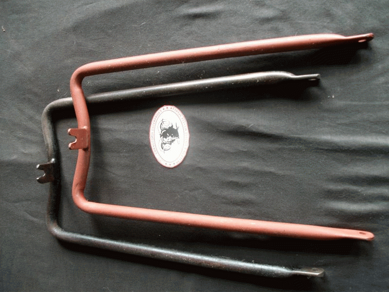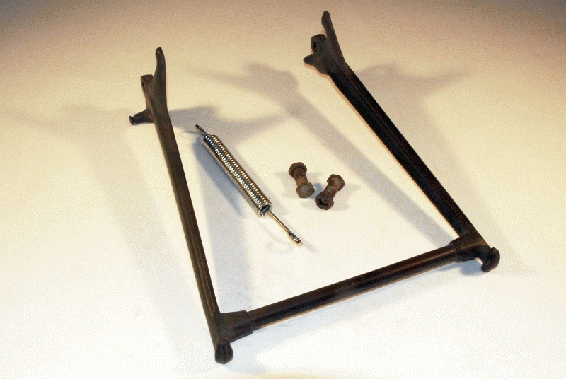 Matchless / AJS Rear Stand ( NOS ) fits all Matchless / AJS ridgid frame models ( 16/18 AJS , G3,G3L,G80 ) ( 1 ) Rear Stand ( NOS ) Matchless Part No. 38-G3-F44 ( 2 ) Rear Stand Springs ( NOS ) modern zink plated Part No. 38-G3-F245 ( 3 ) Rear Stand Bolts + Nuts ( NOS ) Matchless Part No. 38-G3-F254 |