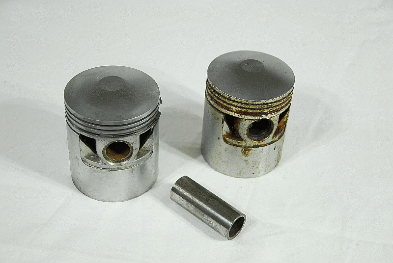 Matchless / AJS Pistons C/W Pin Genuine NOS Std + 20 + 40 Thou Oversize ( Standard Bore Size 69.056mm ) most without Rings fits 1933-46 350cc OHV D3, G3, G3L, G4 Matchless Part No. D3-E312 |