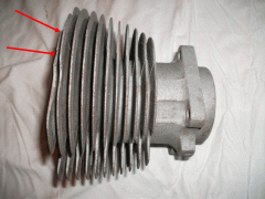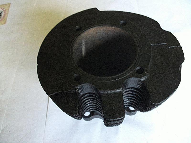 AJS 500cc OHV Cylinder Genuine AJS ( used ) for Restoration STD Bore Bead blasted no Score Marks on Bore 3 chipped Fins on Top & 2nd Fin two chipped Fins on two of the Base Fins, Distance ( looking at Push Rod Side of Cylinder) between Cylinder Head Bolts Front 69.7mm, Rear 61,7mm ( Centre to Centre of Thread ) Casting Number on Base Flange 39-8-E1 fits approx Year 1950 Mod 18 with Magneto fitted in Front of Cylinder AJS Part No. 39-8-E1 |