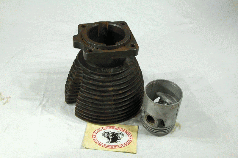 Matchless Cylinder Genuine Matchless ( used ) stamped on Flange W41-G3L-E1 Standard Bore, some slight Marks on Bore but Usable ( will not need Reboring ) two chipped Top Fins includes Standard Size Genuine NOS complete Piston D3-E312 fits 1941 350cc G3L many in Stock ( all have damaged Fins, various bore Sizes ) 100,00 -200,00 € just ask ! |