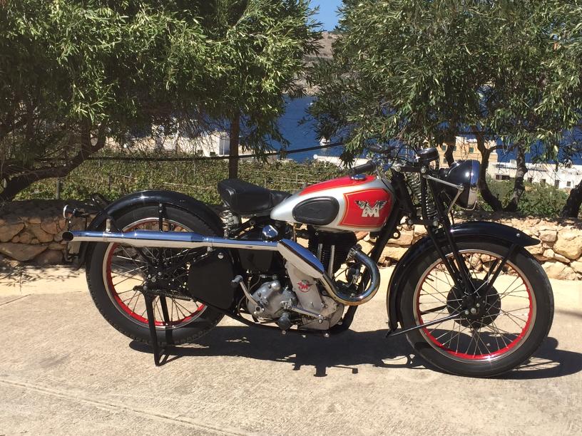 Matchless 1938 G3 , 350cc OHV Sport Owner Tony Cassar, Malta. A wonderfull example, as always perfectly restored. Delivered new to Malta, bought some years ago for Pounds 300 ! ( Frame and many other Parts supplied by Cornucopia ) |