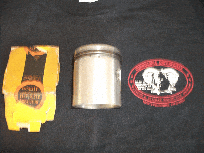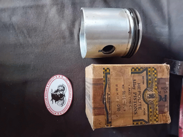 | ARIEL L.H. PISTON. NOS Genuine HEPOLITE 0.40 Thou = 1mm Oversize. Hepolite Nr 4489. (Less G. Pin Cir Clips). Fits 1934- 40 249cc OHV Red Hunter, LH; LG, De Lux OH. C. Ratio 7 to 1, Standard Bore Size 61mm (also in stock LH VALVES) |