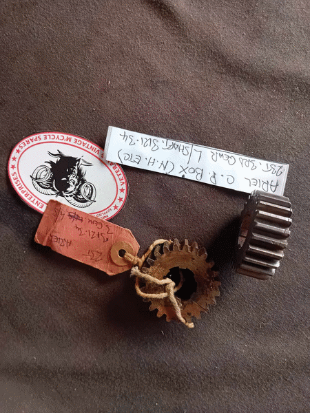 Ariel Engine Sprockets 19 Teeth Cam Lobe Thickness 7,5 mm ( 1 ) NOS ( with some Storage Marks ) ( 2 ) good used ( very little Wear ) all 1/2 x 5/16 Chain Size ) fits 1938 Singles 350cc-500cc Ariel Part No. 1335-30 |