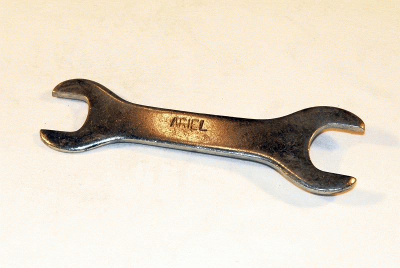 | Ariel Genuine Ariel ( NOS ) Spanner ( Modern Zink Plated ) To fit Steering Head Nuts and Wheel Cones fits Single Cylinder Models 250cc 1937-39 Square Four Models 1936-38 Other Singles Ariel Part No. 6606-27 and Ariel Part No. 6606-30 (P.S. Modern Spanners are too large to fit bettween Bearings) |