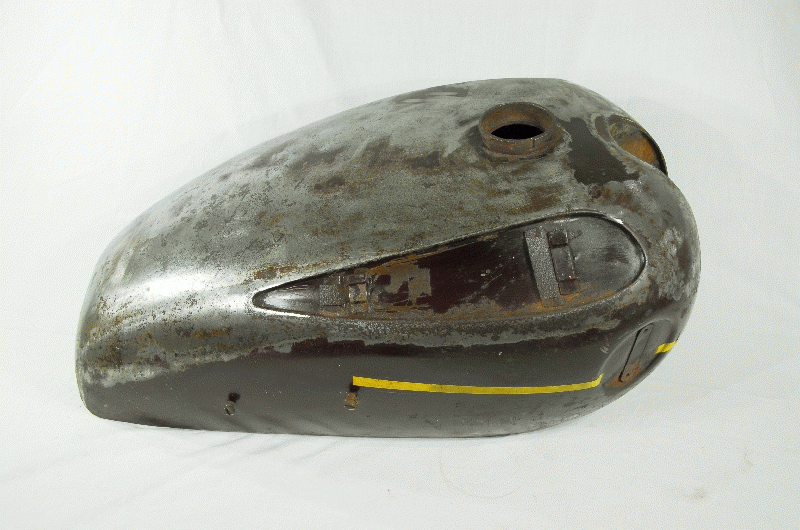 | Ariel Petrol Tank ( Used ) Genuine Leak Tested, Dents Removed, needs Painting includes Side Chrome Strips ( Used ) fits 1956 500cc KH Twin ( This Tank only made for one year, Very Rare ) |