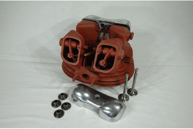 Ariel Cylinder Head Inlet bore size 23.6mm Genuine ( Used ) Bead blasted + Primer coat includes used Rockers, Valve Caps, used Valve Guides, ( But may need replacing ), used polished Alloy Rocker Covers + Set new of Inlet K15-48 & Exhaust Valves K2-48 Threads all good, no broken fins Valve seats, need grinding, fits 1947-53 500cc KH, KG Ariel Part No. K2-48 |