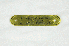 Ariel Replica Silencer Badge ( Brass ) with script ( Efficiency of Silencer Certified by Automobile Association ) fits 1928-30 Models Ariel Part No. E8 / 750 |