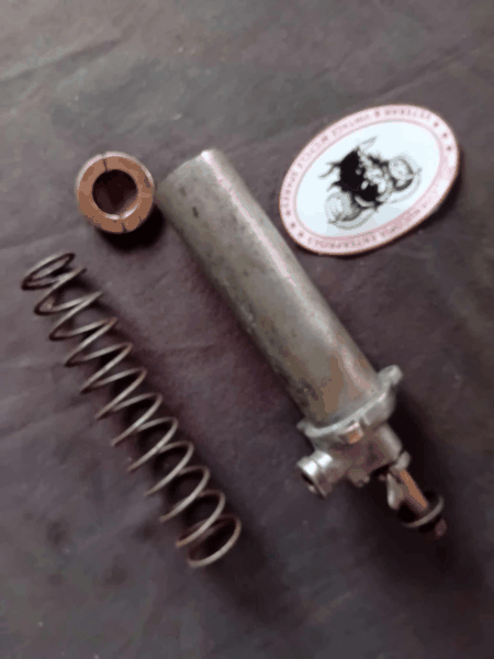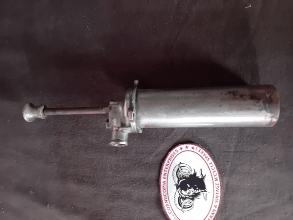 BSA ETC. PUMP SPARES, Pump Head and Barrel, Pt Nr E.B. 707 + Pump Plunger Rod E.B.721 + Pump Plunger Knob E.B. 720 Includes E.B. 728 Pump Plunger Spring (Barrel End has non-standard sealed end holding spring, normally has screw-in filter cap) USED FOR RESTORATION (Fits many 1920s BSA Models) |