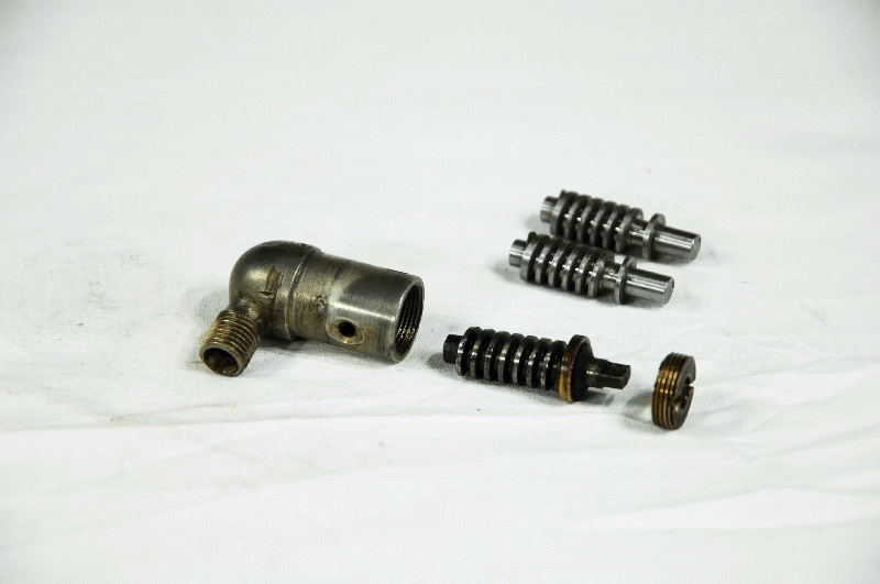 | BSA Oil Pump Elbow Genuine BSA ( used ) BSA Part No. 15.52 complete with Worm Shaft 15.84, Grand Washer 15.85 ( 1 ) complete Unit good condition ( 2 ) Replica Worm Shaft 15.85 Limited Stocks fits 1914-23 2.49HP SV 1924-26 Round Tank Models etc. BSA Part No. 15.52 Part No. 15.85 |