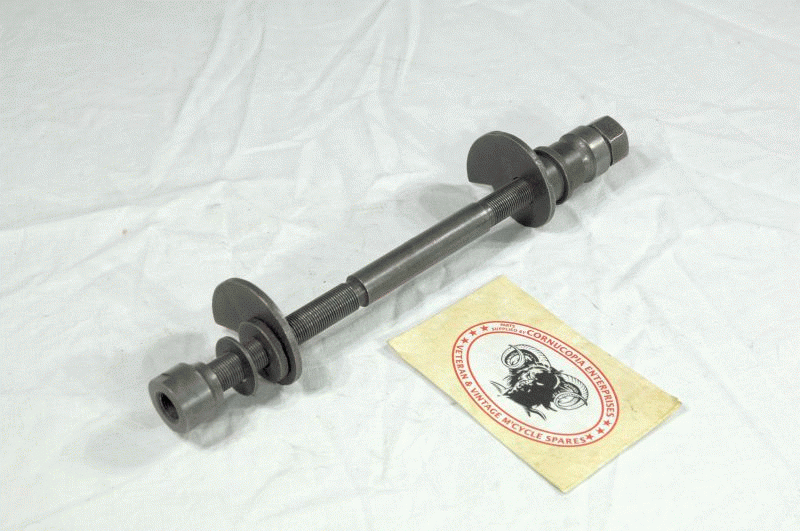 BSA Rear Wheel Spindel ( K81A ) + Cams ( S184 & 184A ) + Spacers, Bearing Cones Genuine BSA ( used ) Cones have some wear for Restoration Length of Spindel 22,7CM, Dia 1/2 Inch ( but not Cycle thread ! Any one know what thread BSA used on Front and Rear Pre 1915 Spindels ? ) fits 1915 Model K 557cc SV |