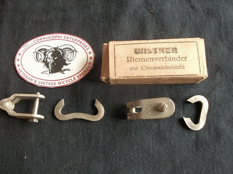 Wissner Belt Drive Connector for Motorcycles Original 1920s ( Chrome Nickle Steel ) Text on Box "WISSNER RIEMENVERBINDER AUS CHROMENICKEL STAHL" Set of 4 Parts |