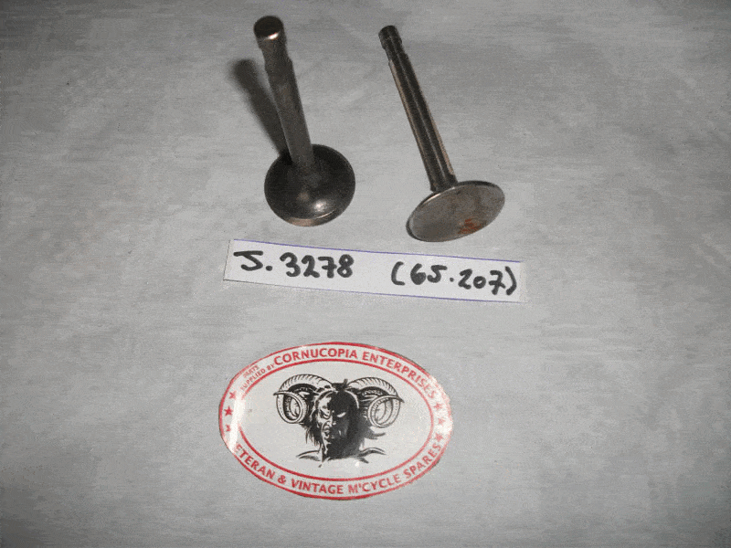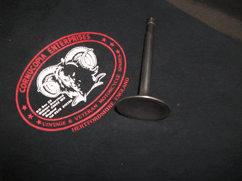 BSA (James British Made) Valve J. 3278 BSA Pt No 65-207. To fit 1937-39 250cc OHV B21, B22 Empire Star Inlet Head 34.1mm, Stem 7.87, Lenth 88.5. |
