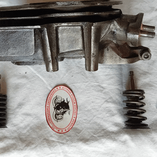 BSA Cylinder Head Genuine ( used ) Cast No On Head 65-26 includes used Valves, Guides, Springs, etc. Bead blasted + Primer Some nasty re threading, welding done 2 chipped Fins fits 1937-38 250cc OHV B21-B22 + 1939 B21 Standard, De Luxe BSA Part No. 65-25 |