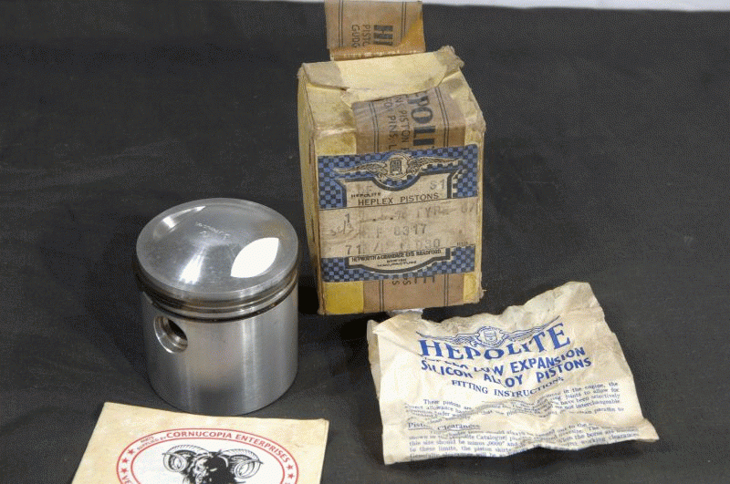 | BSA Piston Genuine Hepolite Standard Bore Size 71mm, this Piston is +.030 = ,75 mm, Oversize = 71.75mm complete with Rings, Pin Slight rust on Pin, & Pin Circlips missing fits 1937-38 350cc OHV Sports B26 Part No. 7132 |