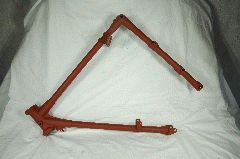 BSA Front Frame Section Genuine ( used) Bead Blasted + primer coat New Tapered Roller Steering Head Bearings fitted Saddle Fixing Point missing, also Oil Tank Fixing brackets -- Together with this frame section, we have a BSA owners Club Dating Certificate, from Dating Officer Brian Pollitt Dated 30/3/ 2000 Confirming this Frame was despatched to Mr L. Leozozynski, Warsaw Poland on 26th May 1938 -- fits 1937-39 350cc OHV B24-5-6 BSA Part No. 65-4079 |