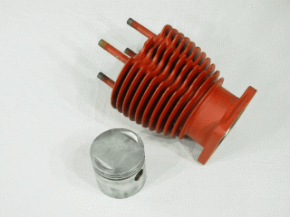 BSA Cylinder and Piston + Cylinder Head Studs used ( Hepolite Piston No 7149 ) Cylinder 64mm = + 40 Thou Oversize ( Standard Bore Size is 63mm ) less Rings, Gudgeon Pin marked Cylinder bore is part worn but useable Two chipped top fins ( centre ) All other Fins perfect Bead blasted, Primer coated fits 1937-39 BSA 250cc B21 Sports |