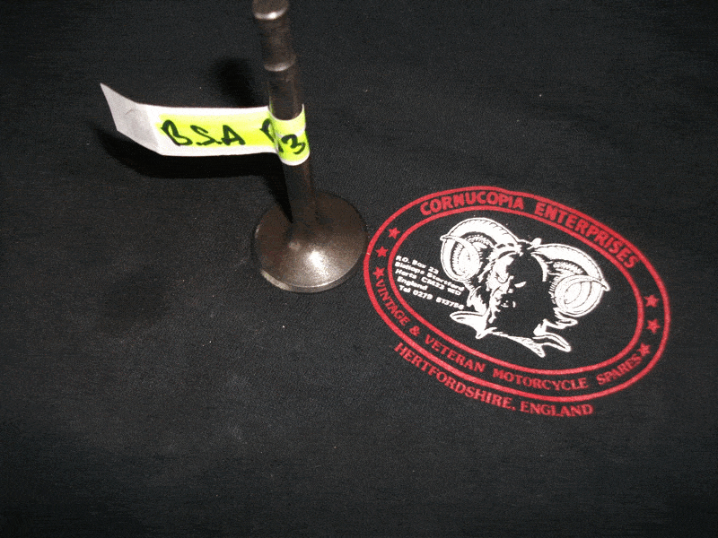 BSA Inlet Valve NOS British James Head 1. 21/32 = 42mm, Length 3. 11/16 = 93,6 mm, Stem .348 = 8,85mm fits 1947-52 B33/4, M33 500cc OHV Single BSA Part No. 65-1239 |