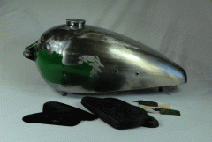 | BSA Petrol Tank Genuine used ( not made in India ) ( small cross guns badge Type ) reconditioned, all Dents removed Pressure tested, Serface good for Chroming fits 1956-61 B31 350c OHV, B33 500cc OHV |