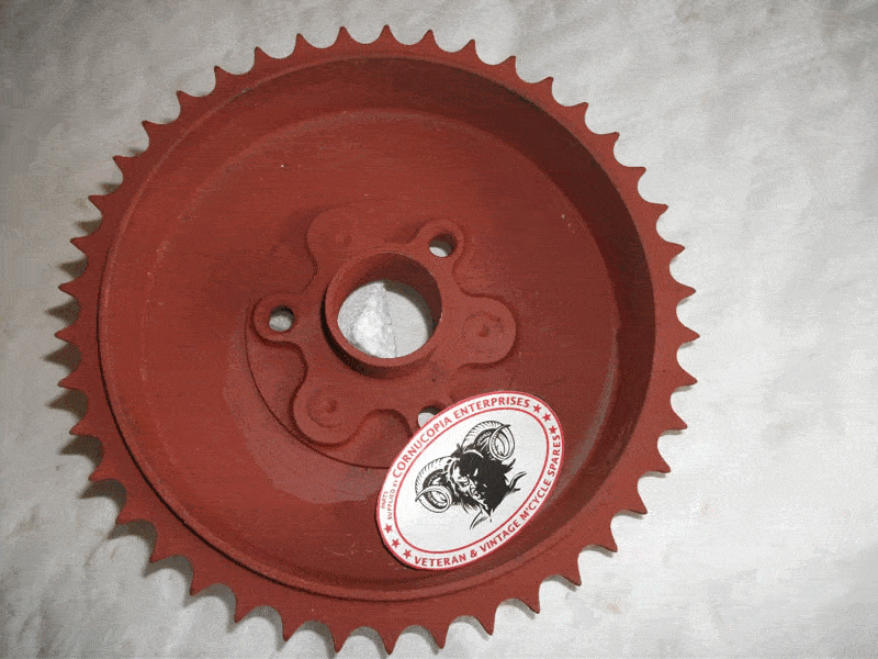 Genuine BSA (Used) Rear Hub Drum - Sprocket: Chainwheel with Driving Studs. PT No 33-6025 For Restoration. Fitted with NEW 3/8 X 5/8 44 Teeth Sprocket. Standard is 5/8 x 1/4. 42 Teeth. Brake Drum Serface in Good condition Fits 1939 BSA G14 V. Twins |