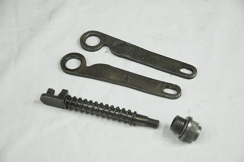 BSA Girder Fork Main section Pt No 33-5006 Main Spring Pt No 24-5211 Top Sleeve Scroll Pt No 24- 5182 Damper Anchor Plate Pt No 33-5089 Genuine BSA (Used) For Restoration. Fits 1939 G14 V. Twin. Four parts |