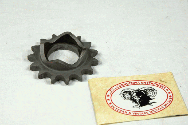 BSA Engine Shaft Sprocket Genuine BSA ( used ) 15 Teeth 3/8 x 5/8 Sprocket ( Inside Dia 37,92 mm ) 4 Lobe Type good usable Condition fits 1927-29 770HP & 986 HP V-Twins, De Lux & Colonial Models 1930 G30-16 World Tour BSA Part No. 25-257 |