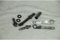 BSA ( No 1 ) Brake Control Ratchet, Thumb Knob & Spring Genuine BSA 1930s NOS ( No 2 ) Brake Lever Fulcrum Pin & Nut ( Replica ) ( No 3 ) Control Lever Bolt unchromed ( Replica ) ( please note some Parts may have Surface Storage Rust ) ( No 1 ) BSA Part No. 27-7833 ( No 2 ) BSA Part No. 26-9440 & A223 ( No 3 ) BSA Part No. 27-7831 |