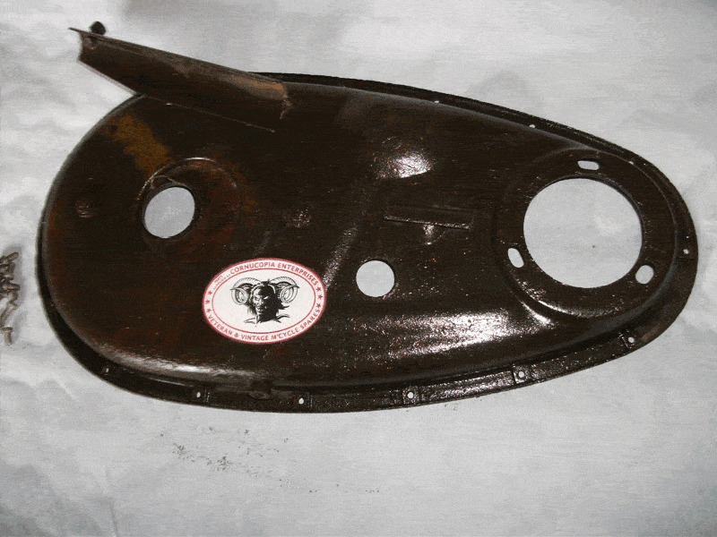 BSA M20 primary inner chaincase Pt Nr 66-7601. Genuine BSA NOS (some surface rust but straight!) With sliding plate and set (16) genuine NOS chaincase fixing screw set. 1-4606 |