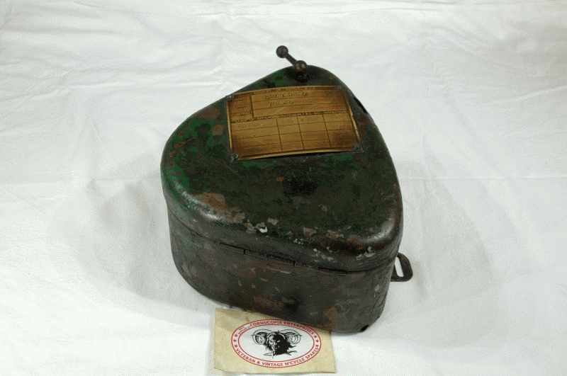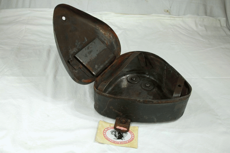 BSA Tool Box Genuine BSA ( used ) good Condition, no Dents for Restoration fits 1937-39 M22-23-24 500cc OHV Models, Rear of box is flat not with recess ( Left hand top bracket is curved ) BSA Part No. 66-9019 |