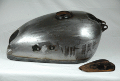 | BSA Petrol Tank Genuine ( used ) reconditioned, all dents removed, Pressure Tested, ready for Painting complete with Panel, and Badges fits 1939-40 M20 Deluxe, M23, M24, Gold Star |