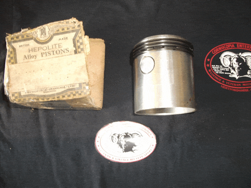 BSA Piston Genuine British Made ( Firm Specialloid, from the 1950s) has no Oil Rings, only two 3.25mm wide, Comp Rings Complete with G. Pin, less Pin Clips Std Size is 85mm, this Piston is 0.75 mm = 0.30 Thou oversize. fits 1932-35 Blue Star 500cc OHV Models W32-7, W33-8, W34-9, W35-8 Twin Port C.R. 6.9 to 1. Hepolite Part No. 3420 |