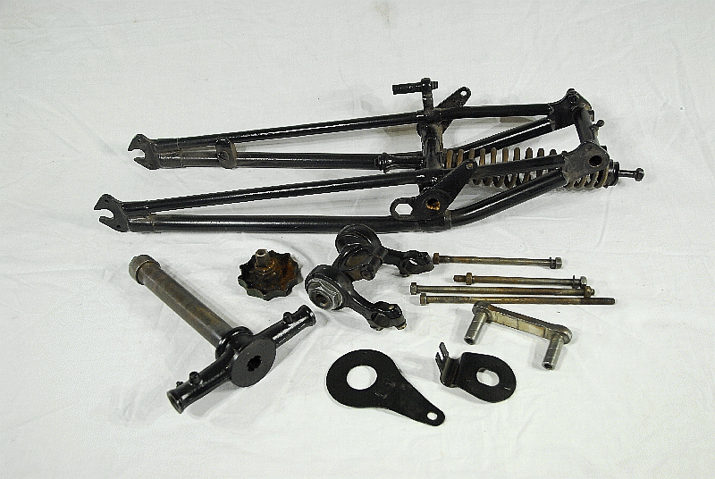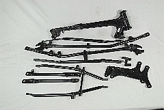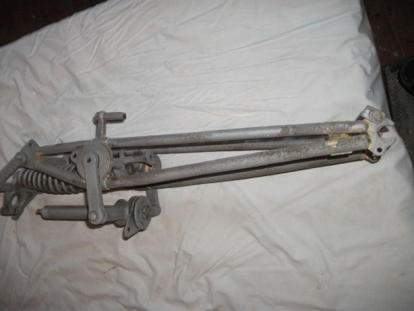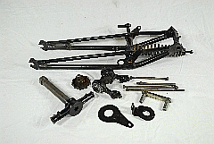 | BSA Girder Forks Original ( used ) Bead Blasted, Primer Coat not 100% complete Parts missing ( Damper Rod and Fittings, Top Links 15-5241 & 15-5240 One Bottom Link 15-5238 all 3 3/8 Inch between centres Side Damper discs ) fits 1935 Models 350cc OHV Blue Star R35-5, TIP R35-17, 499cc SV W35-6, 499cc OHV W35-7-8-9 1936 Models 348cc OHV SP R17, 348cc OHV Blue Star R20, 348cc OHV Empire Star R5, 499cc SV W6, 496cc OHV Q7, 496cc OHV Blue Star Q21, 496cc OHV Empire Star Q8, 500cc J12 OHV V-Twin BSA Part No. 15-5222 |