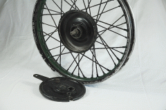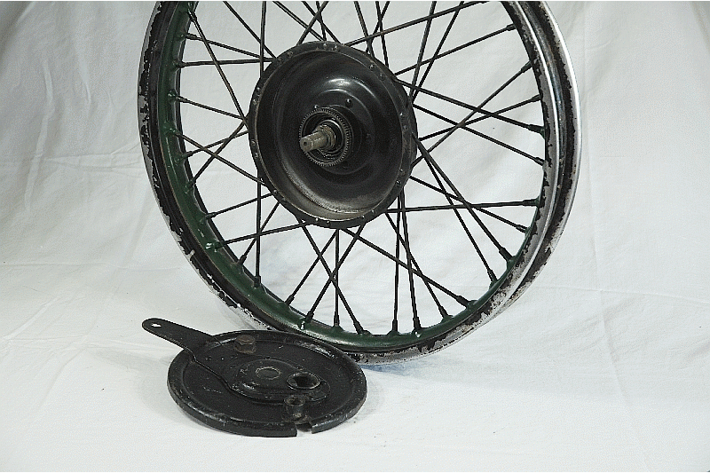 | BSA Front Wheel C / W Brake Plate, Spindel Genuine ( used ) for Restoration includes Speedo Hub Drive Gear, Rim needs rechroming, ( but runs true, spokes also sound, wheel can be used ) fits 1935 500cc Blue Star, Empire Star Q7 & many other Models, Years |