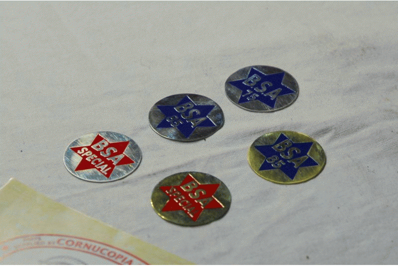 BSA Timing Cover Badges Replica Brass Special 85 500cc Silver Special 75 350cc, 85 500cc fits 1933-35 Special Models W33-9, W34-6, W35-9, Blue Star, Empire Star |