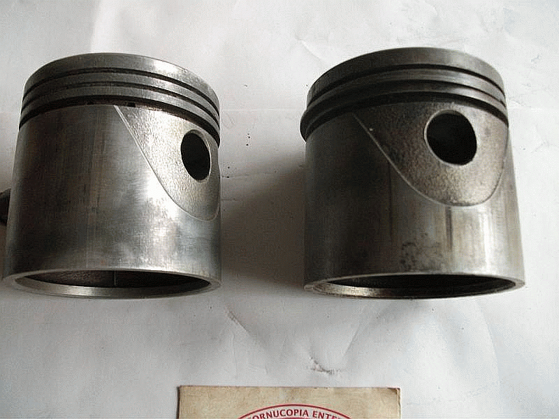 BSA Pistons Genuine Hepolite ( used ) for Restoration one Standard Size 85mm ( use only for sample ) one 85mm + 0.040 for Restoration fits 1935-36 499cc OHV W35-8 Blue Star, High Comp, Twin Port Engines Part No. 5004 |