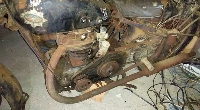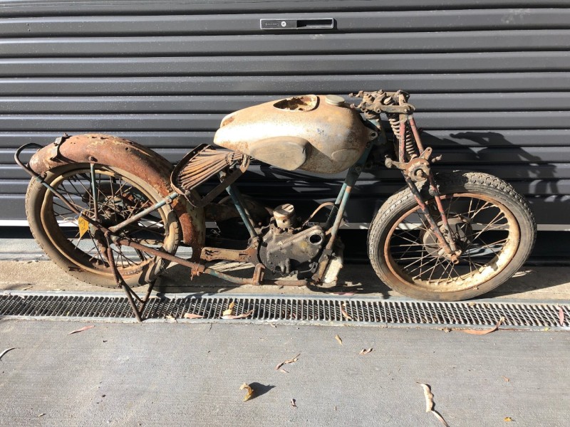 | 1936 Q21 Blue Star 500cc OHV As found by Matt Potts from Toowong BC Queensland Australia. Bought from a collector in Mittagong N.S.W. This is Matts first Vintage Pommy Bike ( His words not ours !) He cut his teeth on a BSA C15 & M20. As you can see from the restoration of his Fathers Austin 7, he knows what needs to be done. We look forward to more photos as the restoration moves on. |