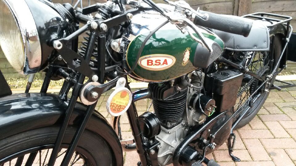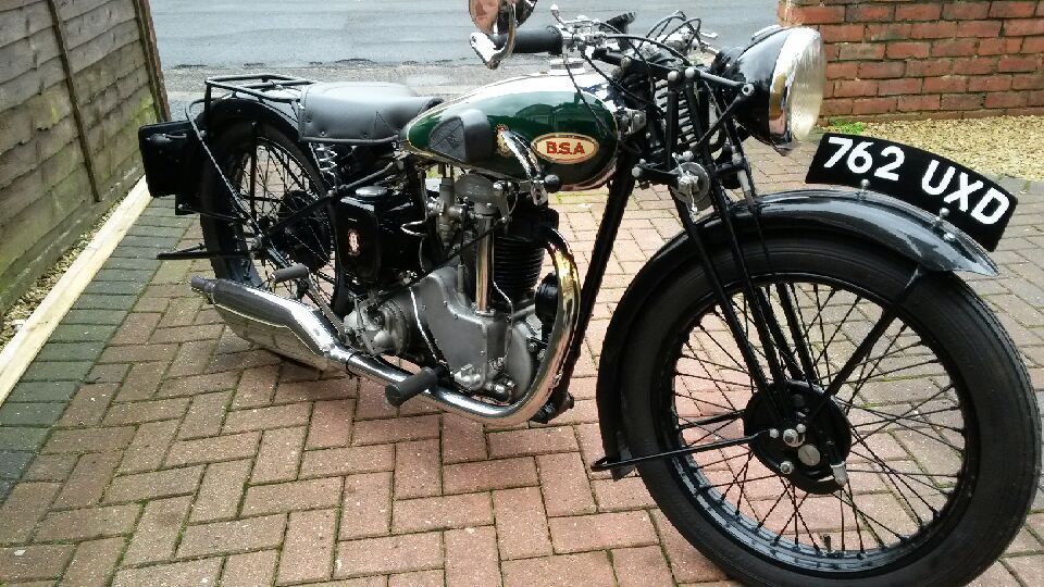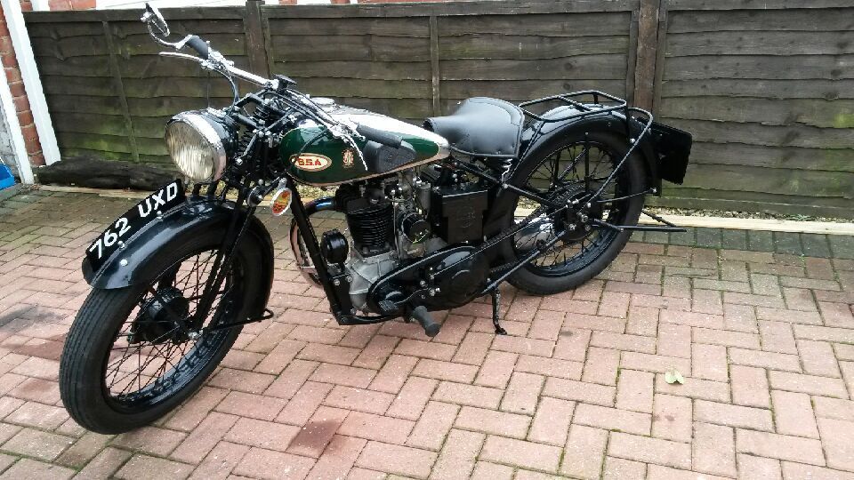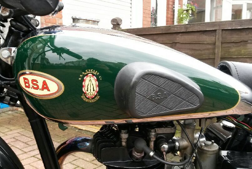 | 1934 350cc BSA R34 de Luxe Owner Myles Raymond Glasgow Scotland Bought on Ebay 2015 ( so called restored) but Myles liked the look ! ( like half a J12 ) BSA produced very few and was not very popular with the Public. So very few come up for Sale. He did not think his chances were good, as it was a pretty looking Bike. Luckily not a lot of bidding. ( poss to near Christmas ? ) So it was purchased for a lot less than its worth. But a lot of time and money was invested to get it right. Wrong Clutch, poor Indian made Levers, Electrical & Carb Problems. In the End, as you can see, a wonderfull Example of a rare BSA. Myles has a few other Projects on the Way, we are sure they will be completed to the same high Standard. PS. 2019 a Valve danced on the Piston ! |