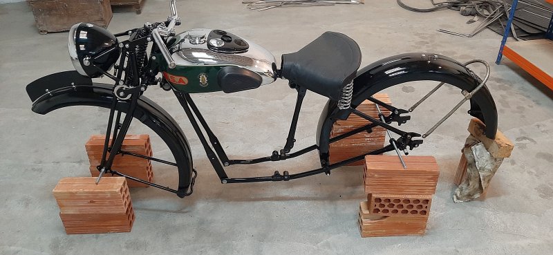 | BSA 1932 Blue Star 3.49 HP Model L32-5 ( Foot Change ) A lot of Motorcycles in Spain between 1930-40 were modified. Photos of Adam Tomas Roiget Tarragona Spain. Slightly Modified ! Blue Star Moves Modification to a higher level ! Nothing new for Adam, last restoration was a 1936 BSA Q7 in the same condition. This is how far Tomas is with the Restoration of the BSA 1932 Blue Star. The Man is a Genius. A Credit to the Pre War BSA Scene. We wait in anticipation for the next Photos. Peter Long |