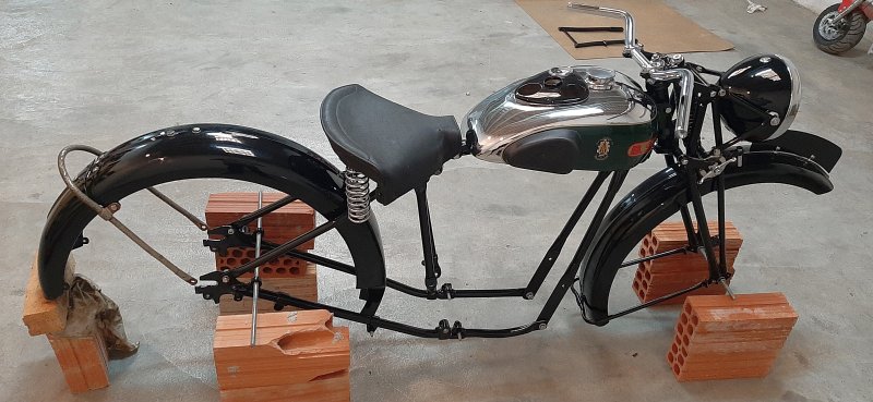 | RESTORATION PROCESS BSA 1938 EMPIRE STAR First Reg in 1938 in Köping Sweden. After a Crash in 1959 nothing was done. I bought it in 1991 together with two other M20s, a 1939 and 1942 Model, but did not start the Restoration till 2019. Luckly the Engine and Frame Numbers match. Rear Mudguard + Tool Boxes and many small Parts was missing.Sadly the Petrol Tank has a small Dent ! and Forks badly bent. All Repairs done by myself, using Crom/Moly Tubing for the Forks, still missing a few small Parts but getting there ! And yes, Parts from Cornucopia Enterprises, Head Lamp Brackets, Rear Carrier, Handle Bars + Controls + the very nice MT110 replica Rear Lamp. Owner Häkan Snäckerstrom Sweden |