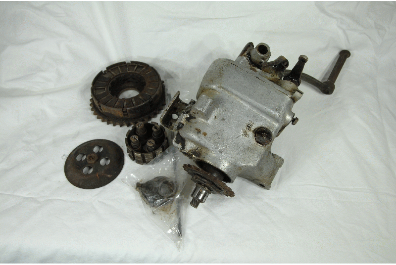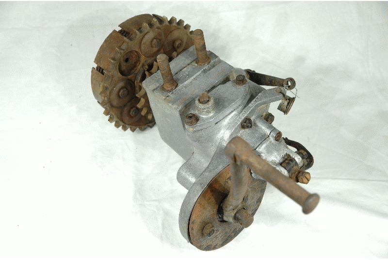 Burman Gear Box and Clutch used Clutch has 3/8 x 5/8 Pitch Drum same as the drive Sprocket, No. stamped on Case SSLEDL ( for renovation ) Gear Box has Speedo Drive fitted this was optional extra not Standard possibly 1920s from German or French Motorcycle |